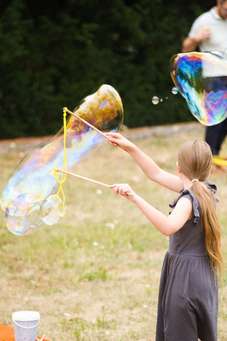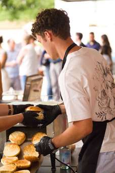 Im Anschluss war auch für das leibliche Wohl bestens gesorgt: Burger mit Pulled Beef, Coleslaw, Grünkernküchle, Pommes sowie Kaffee, Tee, Kuchen und Bauernhofeis luden zum gemütlichen Verweilen ein. Die Spielstraße bot allen Kindern abwechslungsreiche Unterhaltung – vom Kinderschminken über eine Hüpfburg bis hin zum Spielmobil.