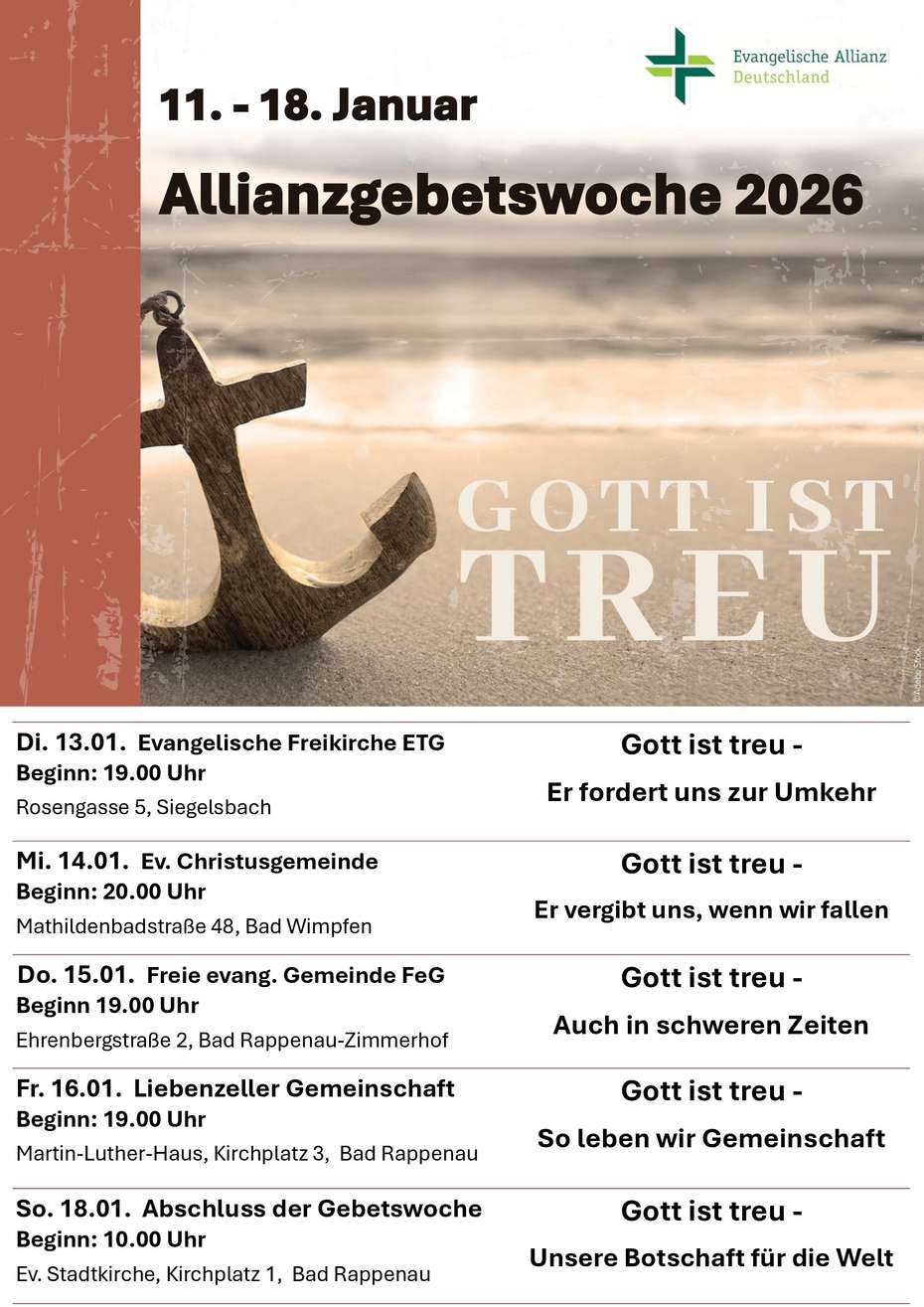 Dich erwartet ein inspirierender geistlicher Impuls, lebendiger Lobpreis und vor allem viel wertvolle Gemeinschaft.