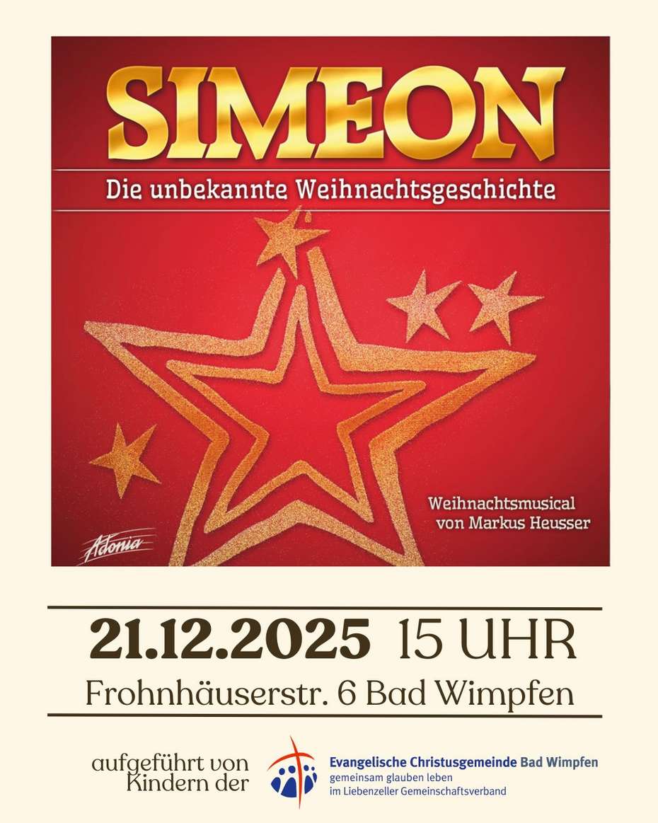 Erlebe Weihnachten ganz neu. Aus der Perspektive von Simeon. Bei unserem Advents-Musical. Am 4. Advent im Evangelischen Gemeindehaus in der Fronhäuserstr. 6.
